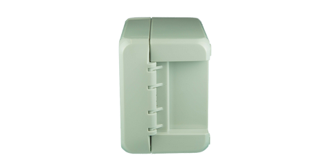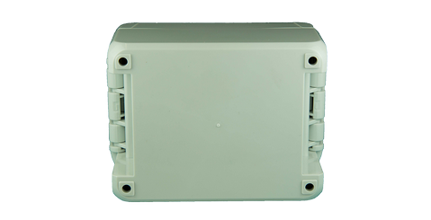 The electronic board and the battery are housed in a polycarbonate case. It is IP67 save and is protected with standard IK7. The case is wall mounted with 4 screws. The screws are not accessible when the case is closed. The electronic board is mounted inside the top cover and can be completely detached from the case body. If required, the case can be secured with 4 security screws against unauthorized opening.